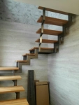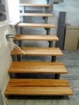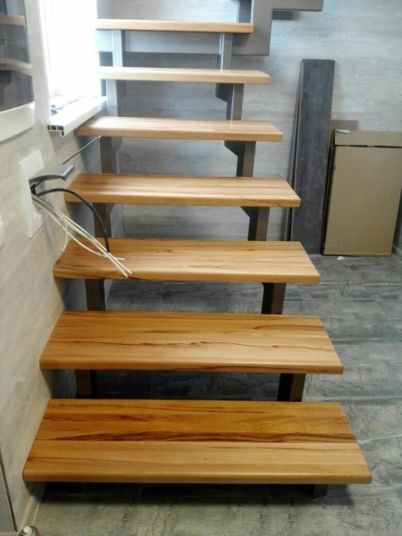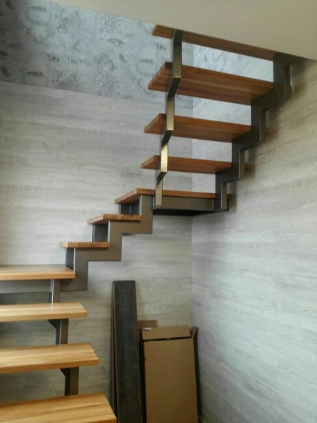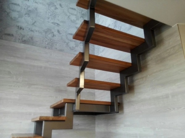 Поворотная лестница на металлических косоурах из профильной трубы 100х50 мм.