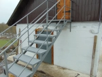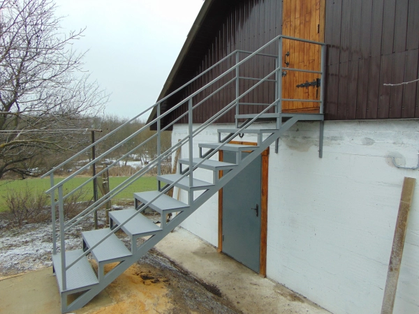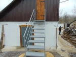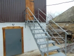 Ступени — чечевичный лист 3 мм. Ограждения — из металла.