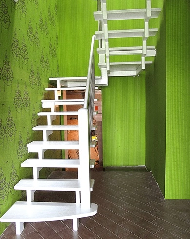 Лестница на косоурах с пролетом на второй этаж.