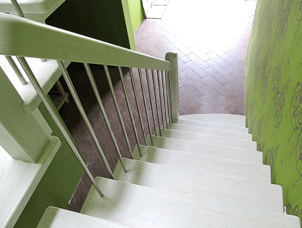 Отделка лестницы деревом из ясеня.