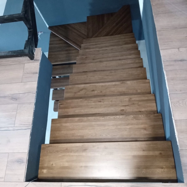 Ступени из дуба кантри цельноламельного 40 мм, покрыты лаком в два слоя.