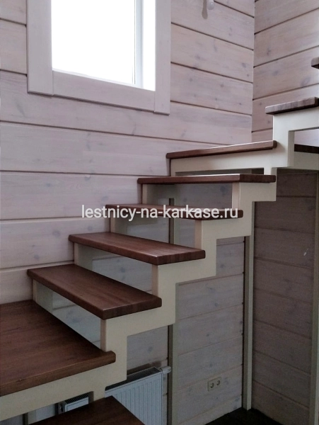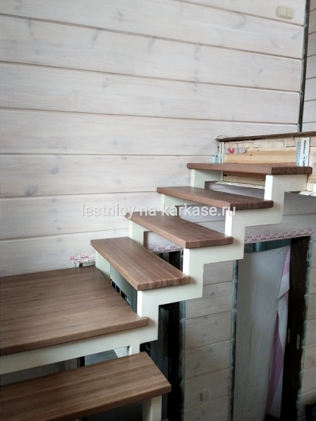 Ступени из дуба кантри цельноламельного 40 мм, покрыты лаком в два слоя.