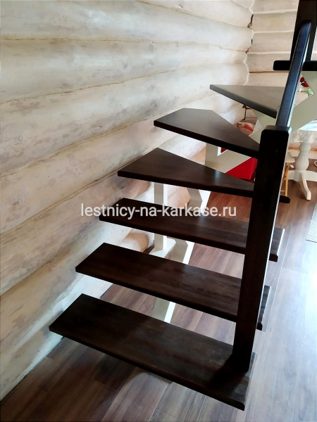 Лестница на монокосоуре на каркасе из листа металла и профильной трубы на 2 этаж с забежными ступенями в частный дом №378