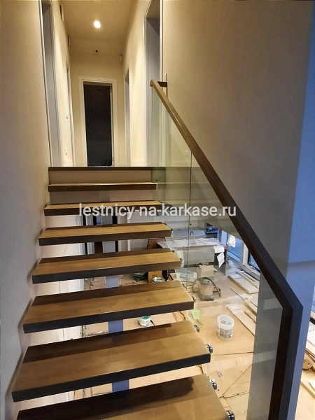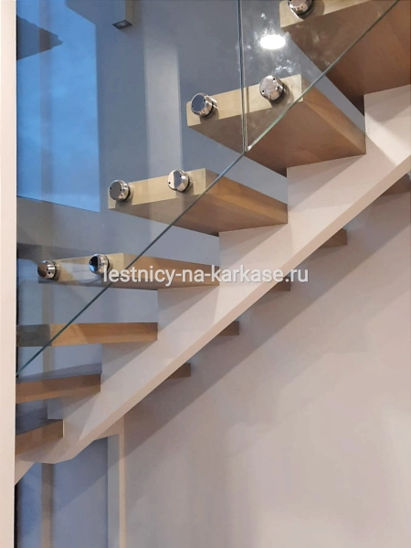 Ограждения стекло 10 мм, закаленное. Маршевые участки на точечных креплениях.